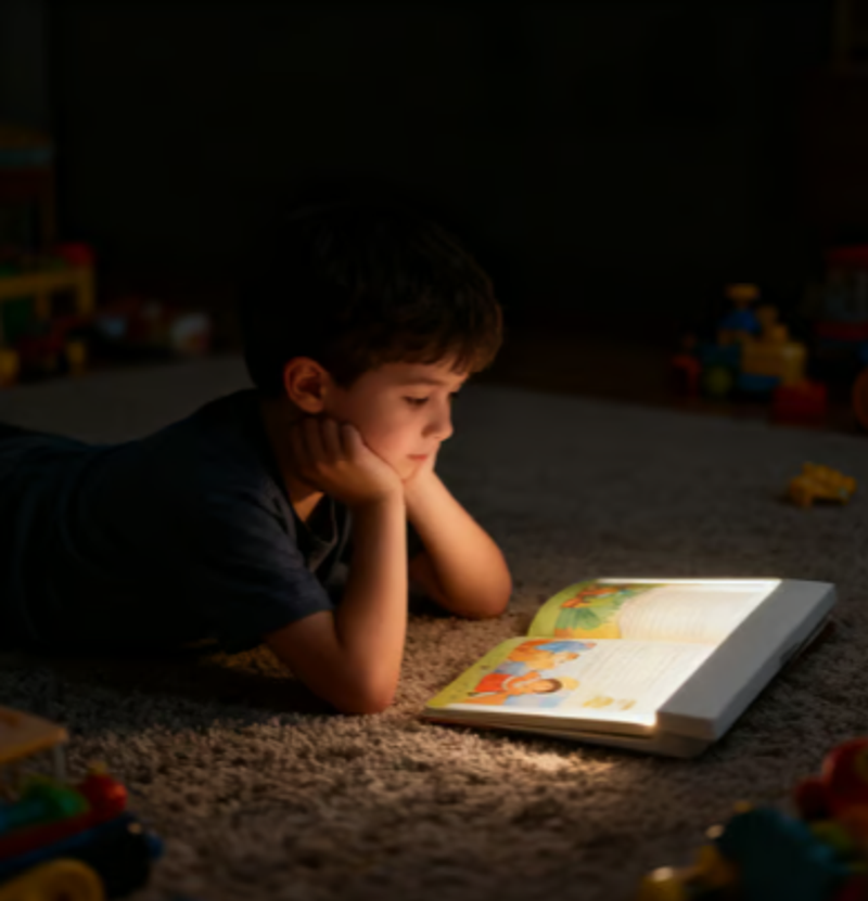 - OWN YOUR OWN READING SPACE: The design angle of the book reading light for kids is precise, the light only illuminates the reading position, and the light shield prevents the residual light from leaking. The light is only in the reading position, flat book lights for reading at night especially suitable for reading in bed and does not affect others
