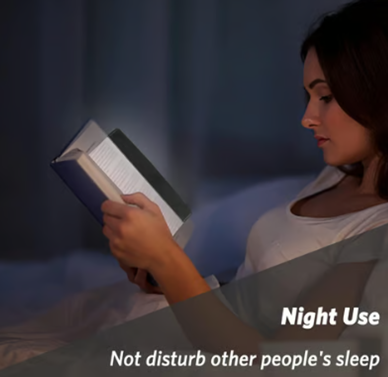 The tablet reading light is an innovatively designed reading light source that only illuminates the page you want to read without letting the light shine directly into your eyes or affect others.