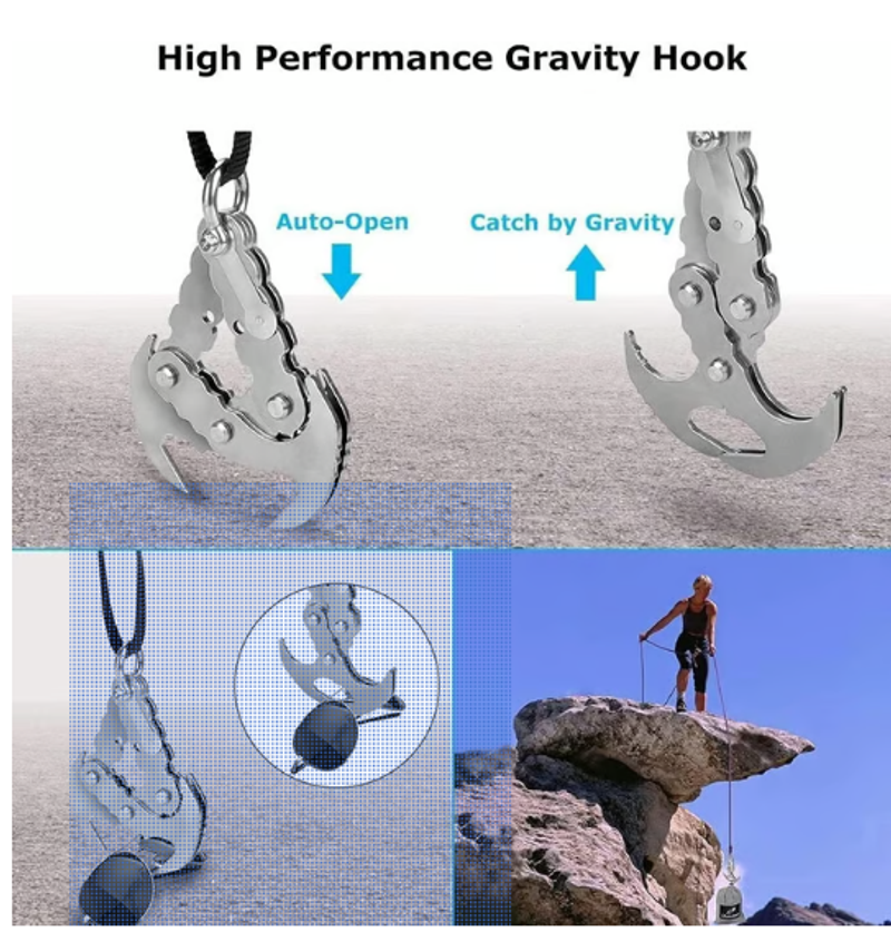 Our climbing hooks are made from high-quality stainless steel, ensuring superior durability and strength. The hook has unparalleled grip, achieved through precise oil hardening, and is designed to support nearly 200 pounds.