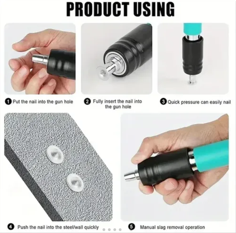 Small Head Design: This Steel Nail Wall Fastening Tool Adopts A Small Head Design Of Alloy Steel, Suitable For 16 Slots, 20 Slots, And Row Slots. The Reinforced And Thickened Alloy Steel Firing Pin Supports The Installation Of Nozzles Of Different Sizes, Which Makes It Suitable For Nailing On Fixtures Of Different Sizes. The Detachable Design Of The Handle Ensures That It Can Be Connected To An Extension Rod. It Can Be Done Without Climbing. (Extension Rod Not Included)
