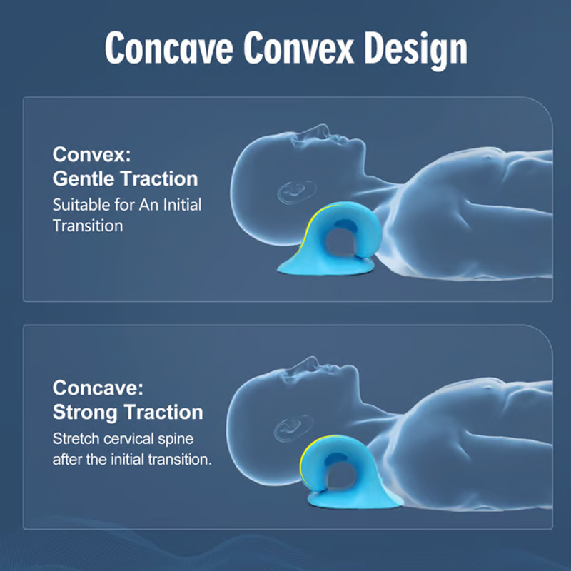 ERGONOMIC NECK TRACTION PILLOW:The ergonomic C-curve design perfectly matches the human cervical spine, It provides a perfect cervical traction pillow. When you lie down, it offers vertical, horizontal support, and curvature stretch for neck traction, allowing the neck stretcher to gently position the head to reduce spinal pressure, help users maintain a good spinal posture.