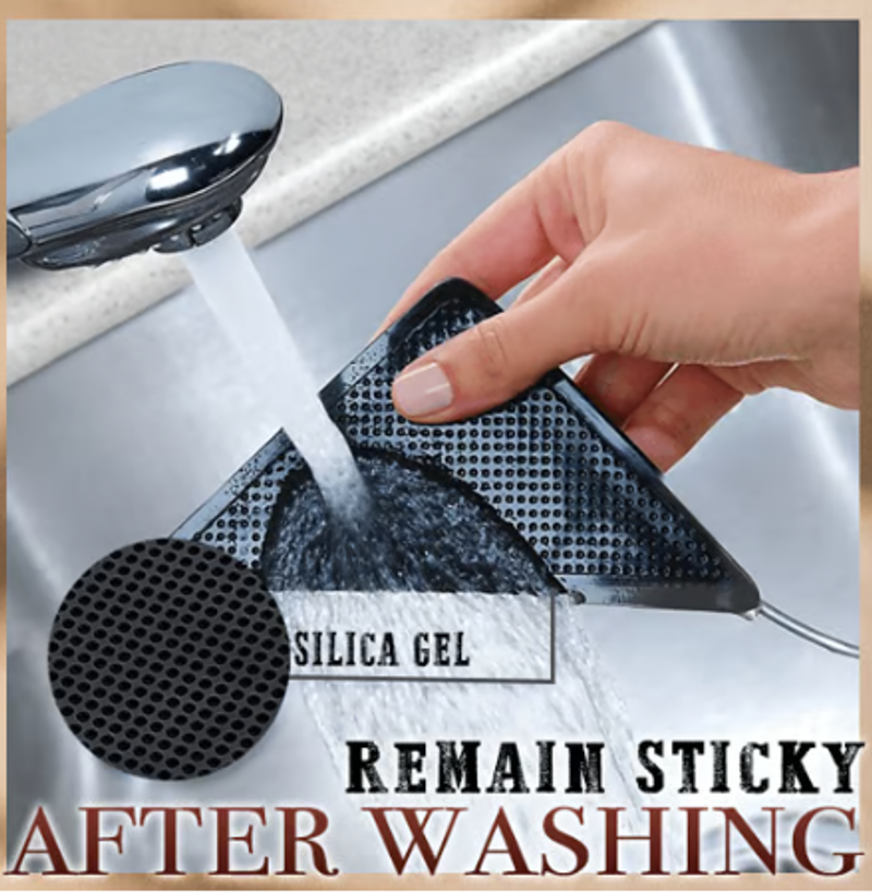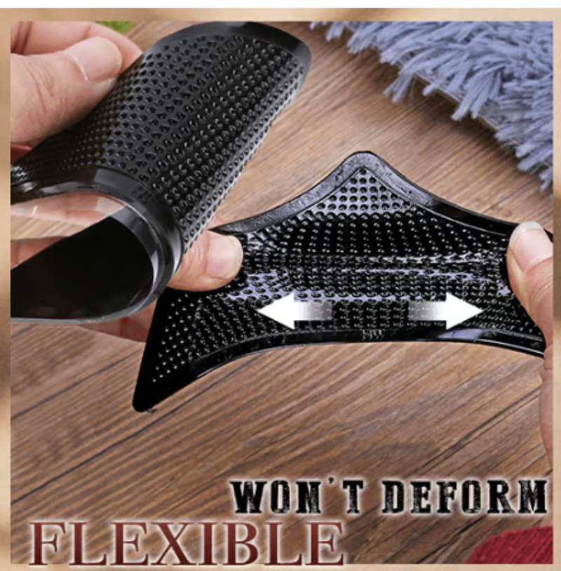 Made of non-slip silicone gel pads in triangular shape, perfectly fit carpet corners. Strong adhesion keep carpets firmly in place and flat.