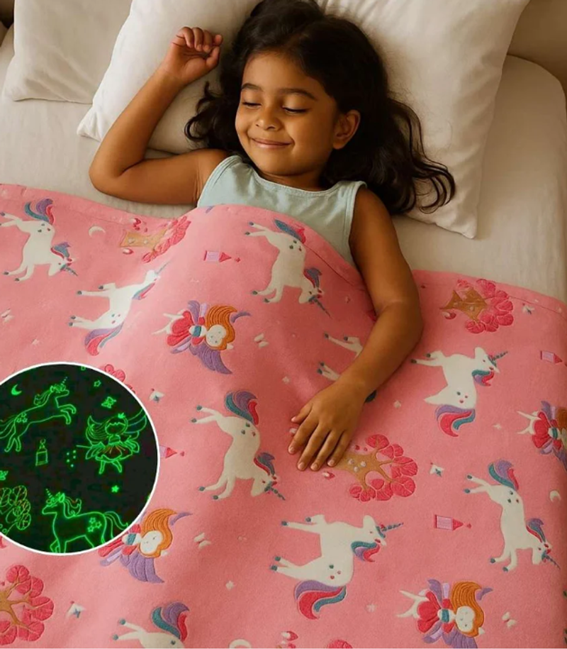 Bring joy to your little ones with our Glow in the Dark Unicorn Blanket for Kids! Perfect for birthdays, holidays, return gifts, or any special occasion, this magical blanket lights up the night sky and inspires imaginative play during sleepovers or cozy cuddle time with parents.