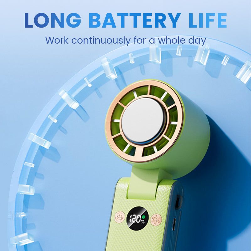 LONG-LASTING COOLING POWER – Equipped with a high-capacity lithium battery, this fan supports several hours of continuous use. The energy-saving system maintains optimal cooling performance without the need for frequent recharging. With Type-C fast charging support, you can enjoy quick power-ups and say goodbye to battery anxiety.