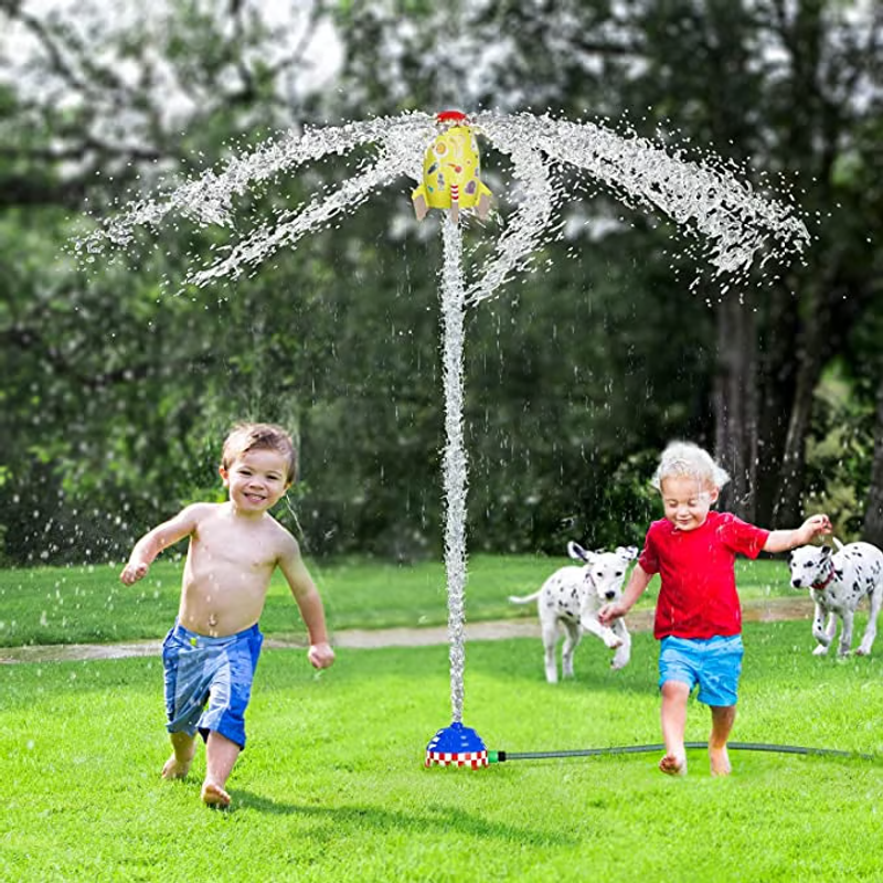 🚀[Durable Material] The rocket sprinkler is made of Eco-friendly ABS material, safe and sturdy, durable and long lasting, perfect to bring your kids or pets a lot of fun in hot summer days.