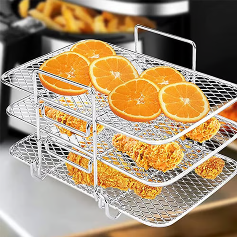 - 【Detachable three-layer design】The air fryer detachable accessories can be used for 2 air fryers at the same time. You can grill steaks on the air fryer cooking rack while preparing the corresponding side dishes in another air fryer basket for a quick candlelit dinner with your friends.