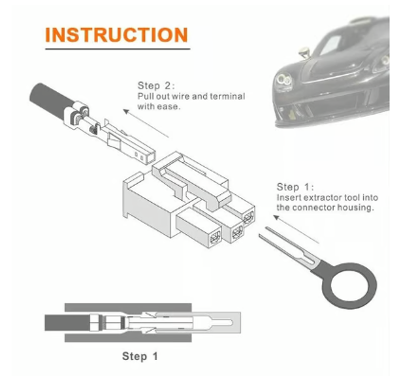 Just insert, push, and pull the wire out instantly without damaging the pins & wires! Even more effective than prying connectors apart with a screwdriver!