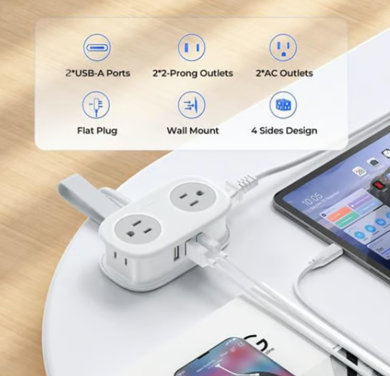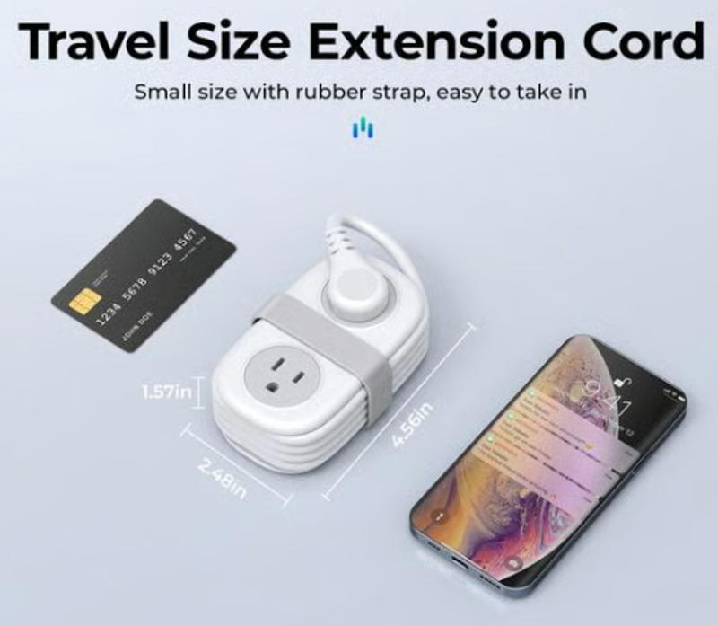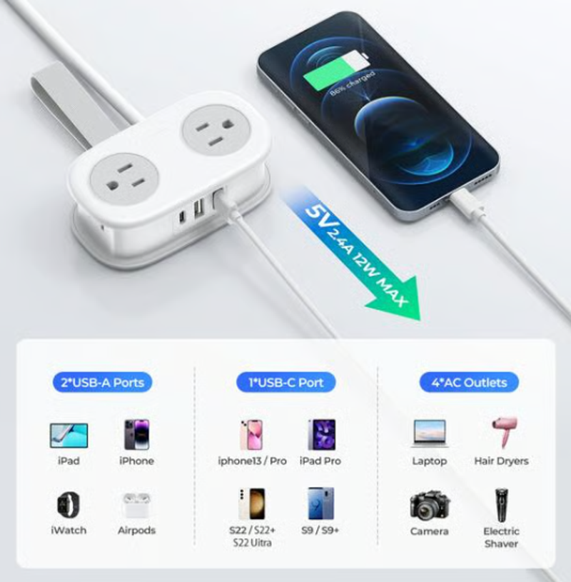 This isn’t your average power strip. With 4 AC outlets and 2 USB ports (including 1 USB - C) 5V/2.4A Each Port, 3.1A/15.5W in Total, it’s a charging powerhouse. Phones, tablets, laptops, cameras — plug them all in at once. No more waiting in line to charge devices. It’s like having a personal charging station in your bag! 📱💻📷