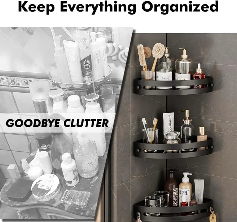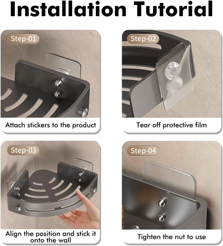 Suitable for storage in the corners of your home, the wall shelf can be used to expand your storage space and organize items in the bathroom, and can store all soaps, shampoos and toiletries. Easy to disassemble and wash daily without damaging your wall.