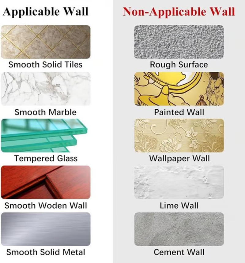 Self-adhesive installation, attach it to the product without any traces, tear off the protective film, align the position and stick it where you need to install it, tighten the nut and wait for 24 hours before use. Note: Adhesive installation is suitable for smooth hard surfaces such as tiles, smooth marble, glass, metal and solid wood.