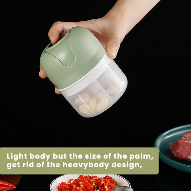 Portable USB Charging: The electric garlic chopper has a USB charging port. The socket has a silicone protective cover. This is a lightweight and practical kitchen tool suitable for home and outdoor.